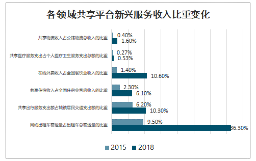 各領(lǐng)域共享平臺新興服務(wù)收入比重變化