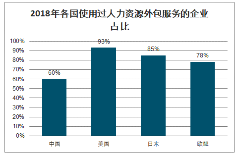 2018年各國使用過(guò)人力資源外包服務(wù)的企業(yè)占比